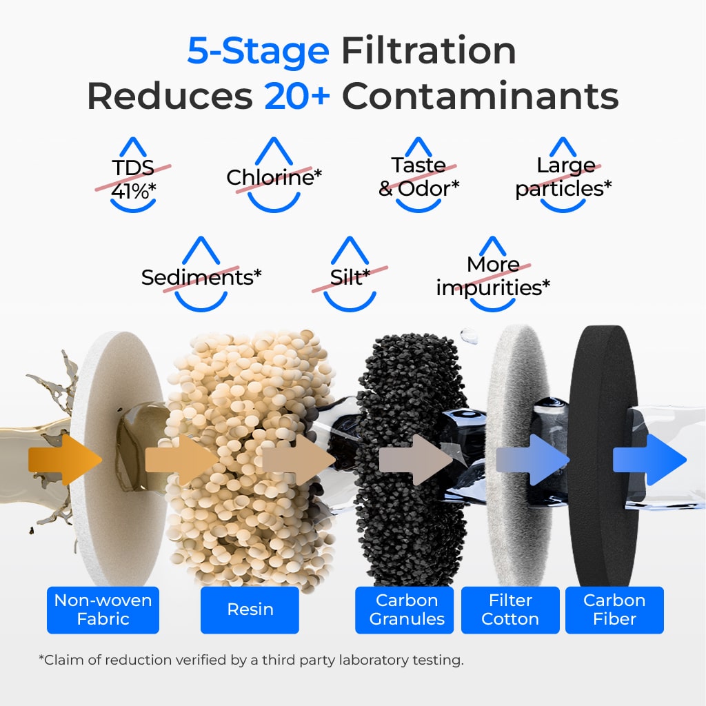 Effectively reduces 20+ contaminants like chlorine and sediments while